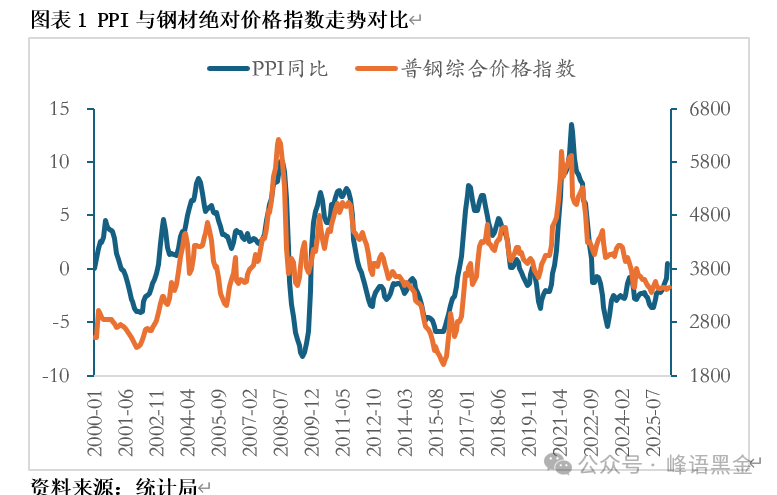 根据相关研究,黑色金属冶炼及压延行业占PPI的权重约在6%-6.5%;但考虑其波动性大,可影响PPI约1.05个百分点。黑色金属价格走势与PPI高度相关,且PPI走势领先钢材价格约3个月左右。且从长周期看有两点规律,一般PPI转正之后,基本不会在回到0以下;PPI转正后,上行的阶段一般对应黑色系的主升浪。